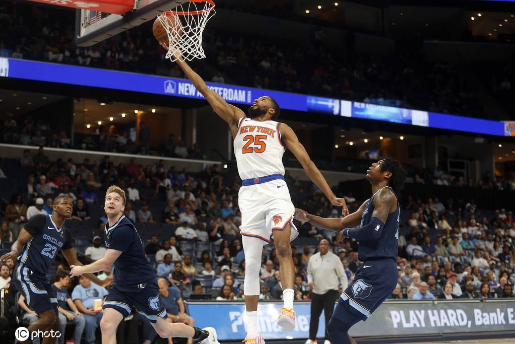 易边再战,普罗斯珀开场空中接力命中,唐斯补篮得分,杰克逊二世命中三分,阿尔瓦拉多连续两次上篮得手,考沃德两罚全中,普罗斯珀续上三分,灰熊不断缩小分差。斯莫尔三分命中后巴尔再中三分,灰熊将分差缩小到3分。沙梅特命中三分稳住局势,克拉克森连拿3分,考沃德回敬三分,三节结束尼克斯99-90领先9分。
